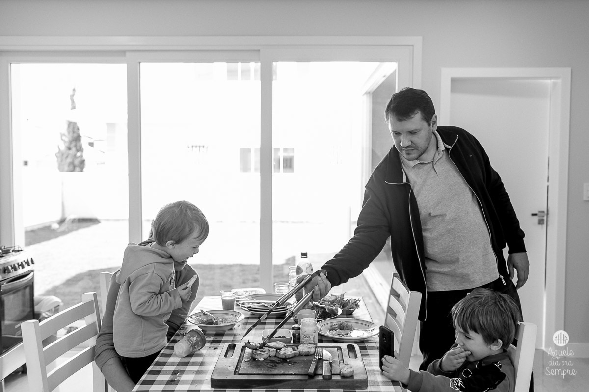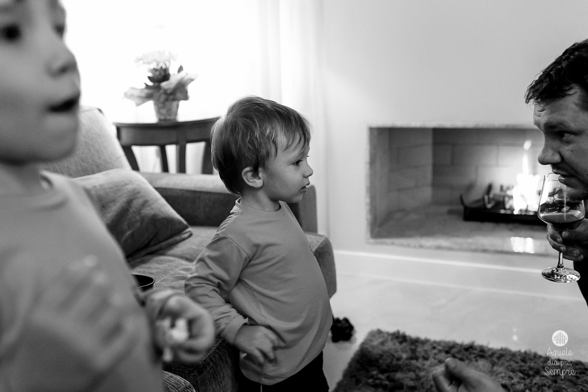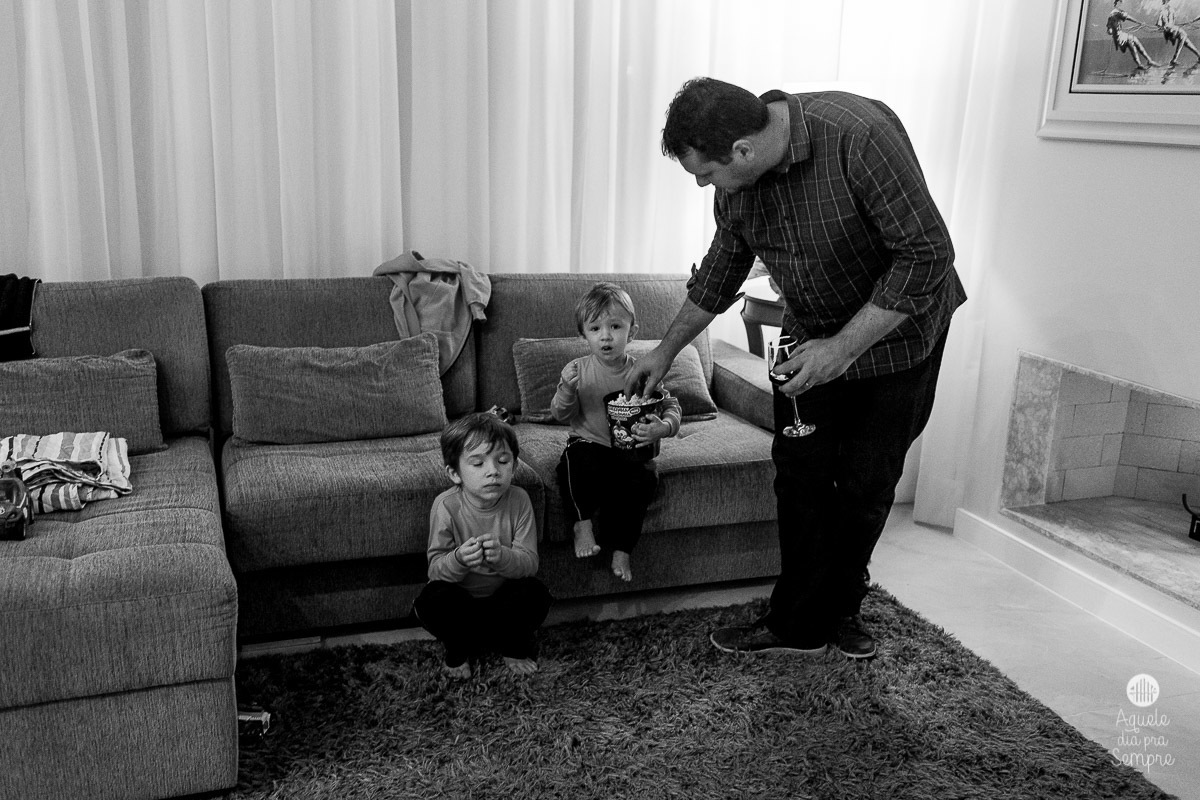 Logo ao chegar na casa dessa família querida, os meninos estavam esperando o Panda aqui para aquela sessão de cinema com pipoca e bagunça! Mas antes da sessão o papai preparou uma pizza pra lá de saborosa e nós aproveitamos hehehe. Estar junto a mesa significa estar em comunhão e nada melhor que começar essa experiência fotográfica abastecido de pizza e carinho! Foi um momento também de conversar, matar algumas curiosidades da família e minhas também. Esse momento ao redor da mesa gerou uma conexão incrível entre nós todos.