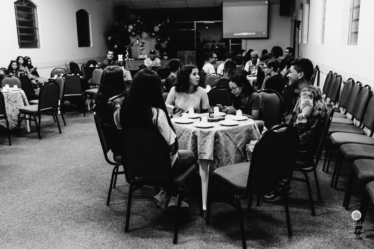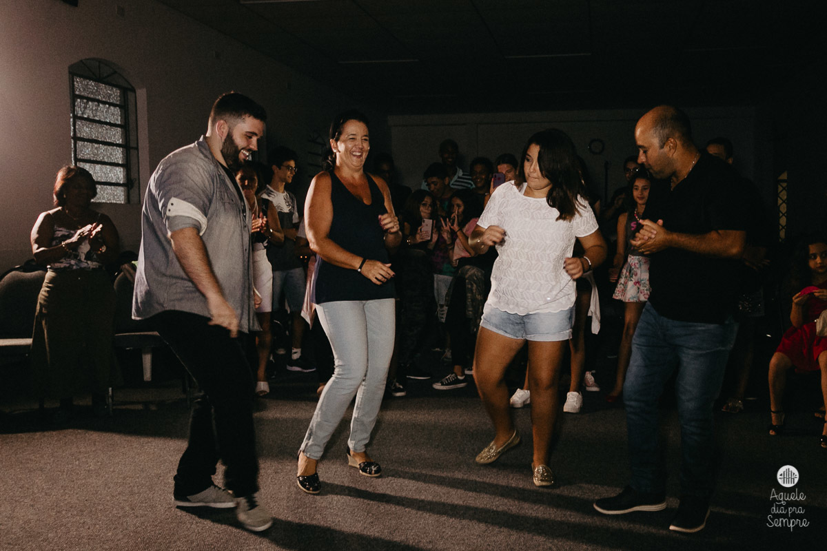 Mariana completou 15 anos recentemente e mal podia imaginar que ganharia uma festa surpresa em sua igreja. Assim como seus pais, ela não soube de nada até o último minuto e foram muitas as emoções ao descobrir tudo. O único que já sabia era seu irmão, que também ajudou a trazer os pais para o local, tudo parte de um plano arquitetado com muito carinho, hehehe.