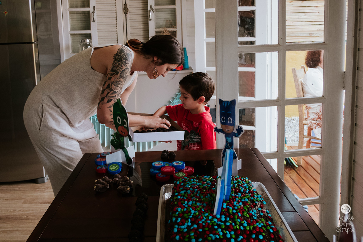 Fazer aniversário em casa tem outro sabor. Ver as comidas sendo preparadas, a decoração tomando forma e os convidados chegando para comemorar. Foi muito especial ver o Kaio acompanhando cada etapa de perto, fazendo parte do seu dia e construindo junto sua festa!